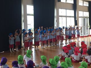 夏休みのお約束をみんなで確認したり園長先生のお話を聞いた後は