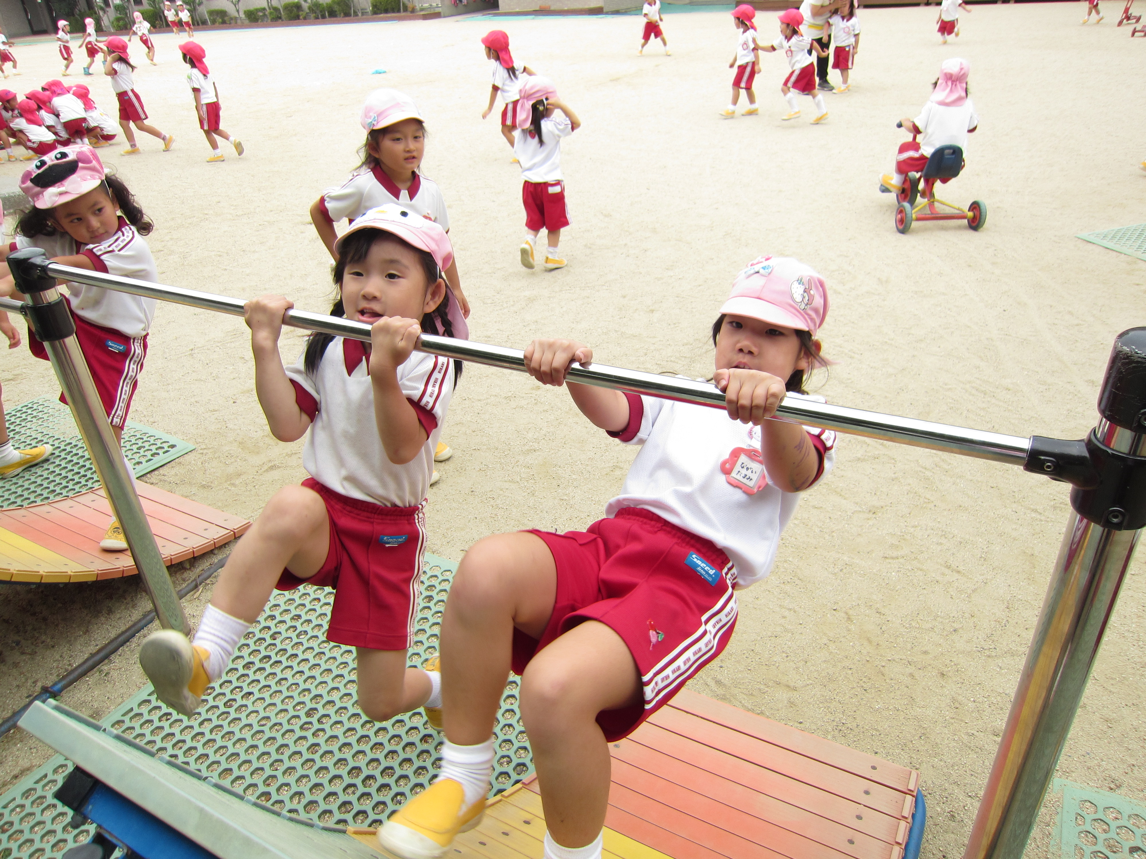 晴れの日は園庭、雨の日はホールでがんばっています!!