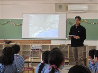 皆が色を塗った魚たちがスクリーンの中で泳いだり・・・