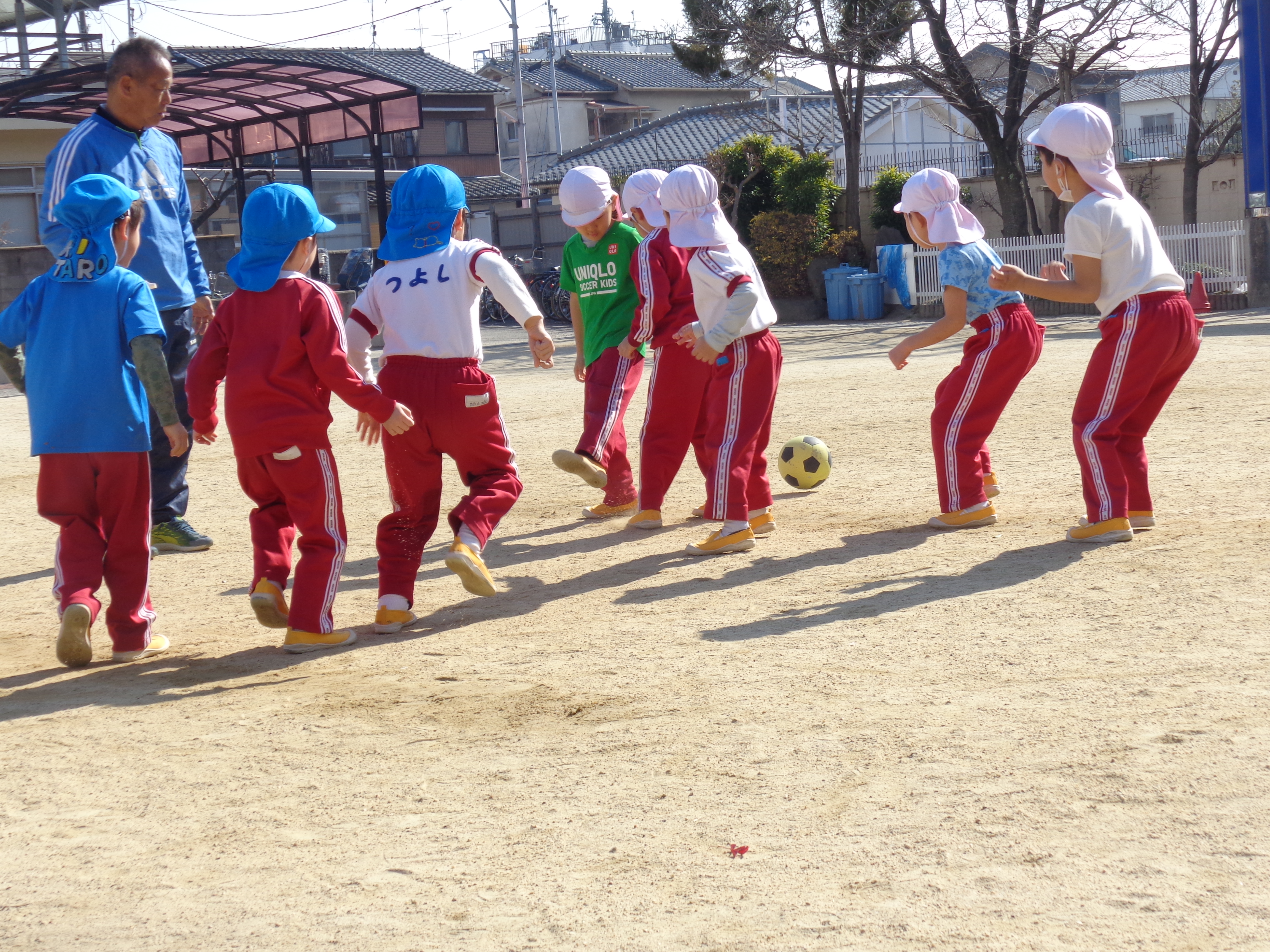 全員で一生懸命ボールを追いかけるこどもたち( ^^)