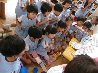 他にもつぼみさんはしめじをほぐしてくれたり、年中さんはトマトを剥く、そして年少さんがトマトを小さく砕いてくれました。