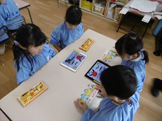 白なのでみんなで i pad を使って色集めをしました♪
