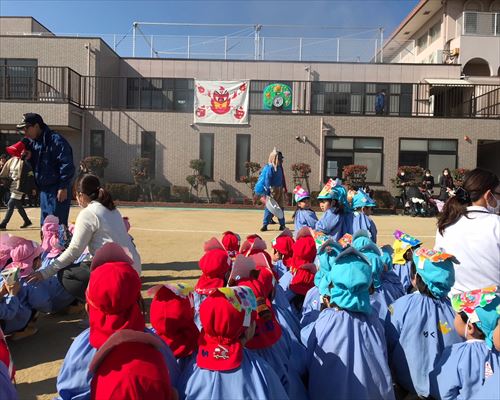 消防署の防火豆まきは「おにさん」は白線から出てこなかったのですが、今日は違います!!