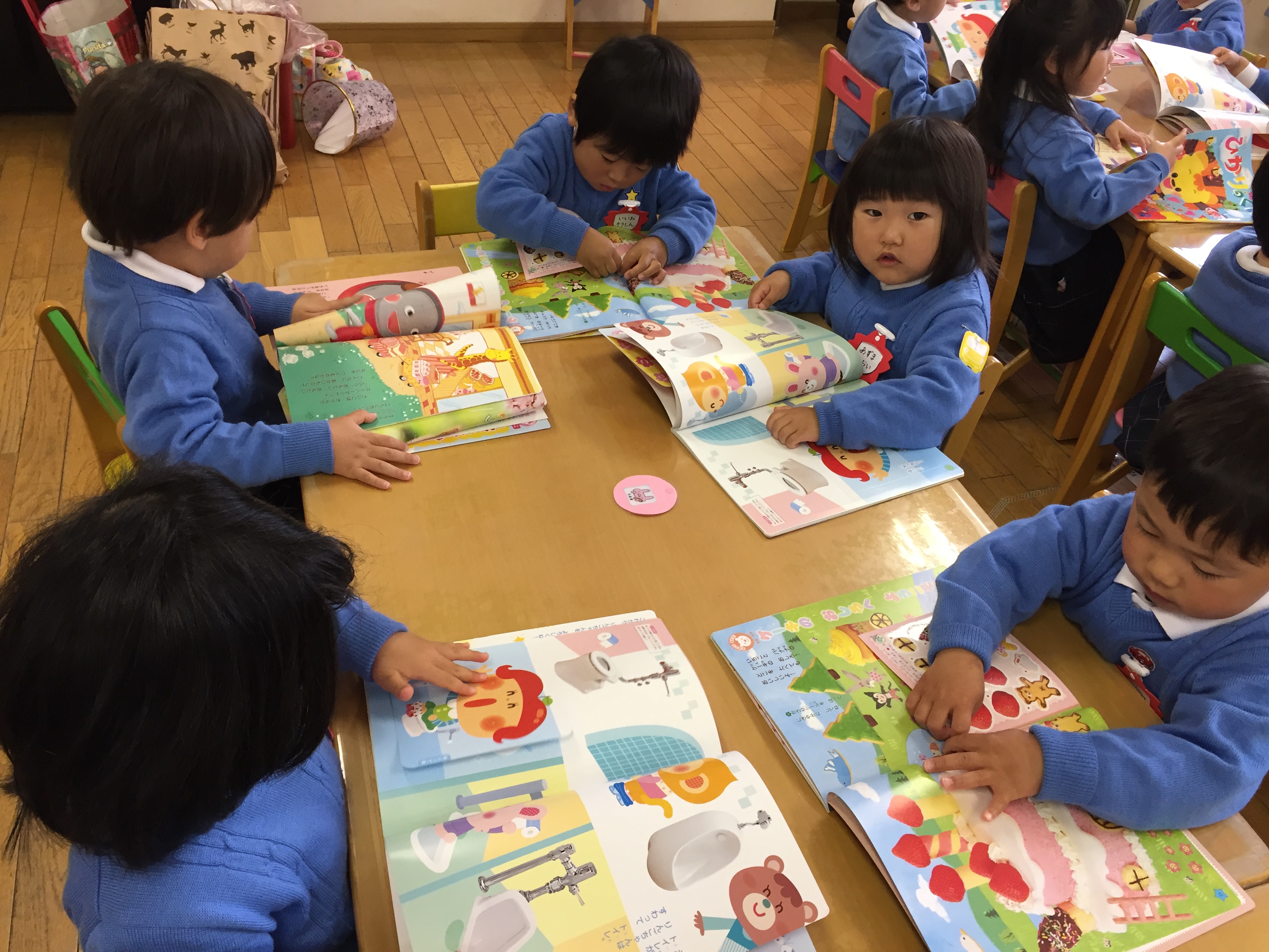 みんなで4月号の絵本を観察し、シールも貼りました。