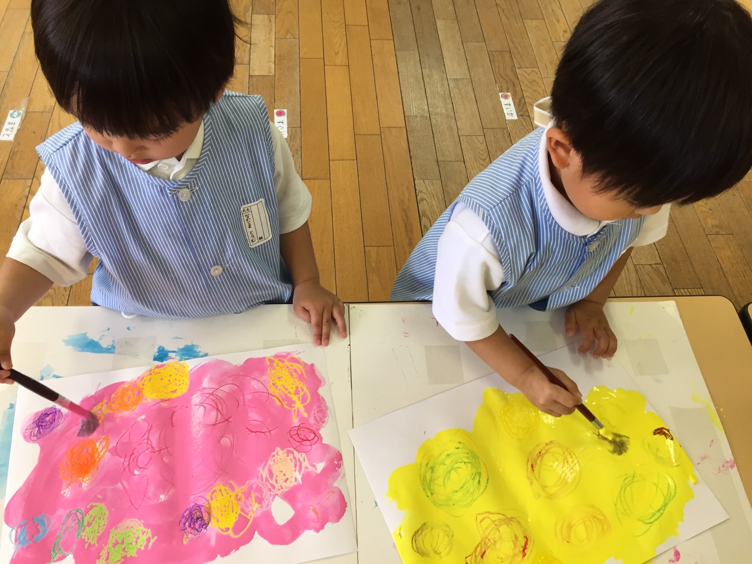 絵の具やクレパス遊びもしていますよ (^_-)-☆