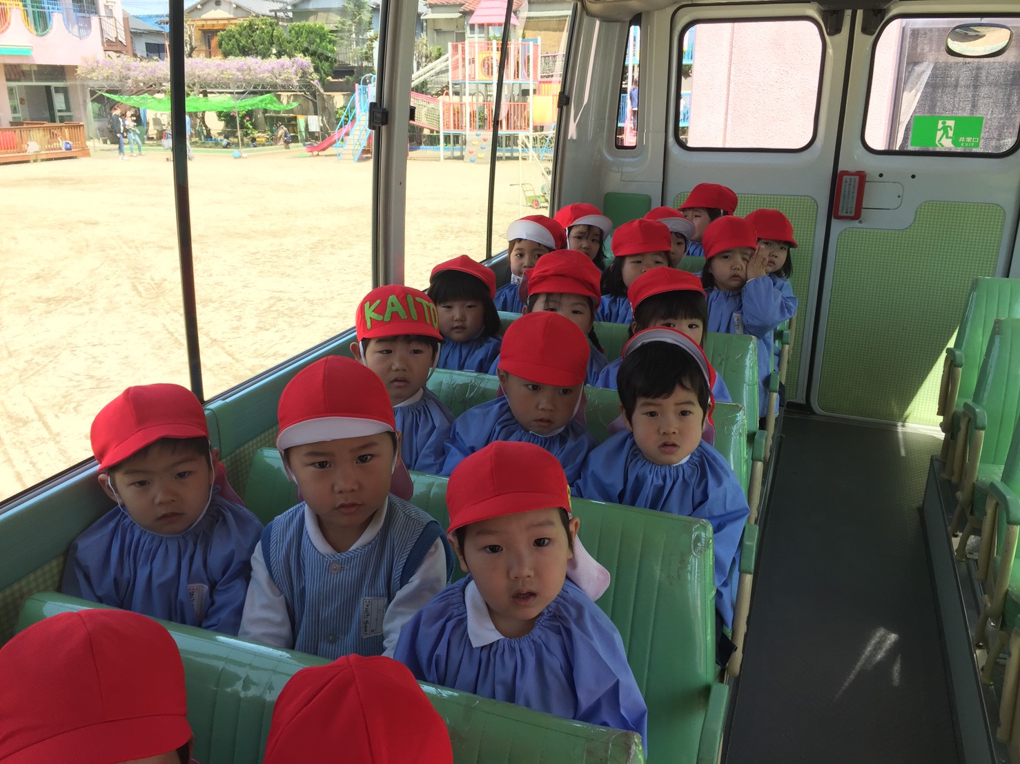 背の順に並んで歩く練習をしていたら、おじさんがバスに乗せてくれました。