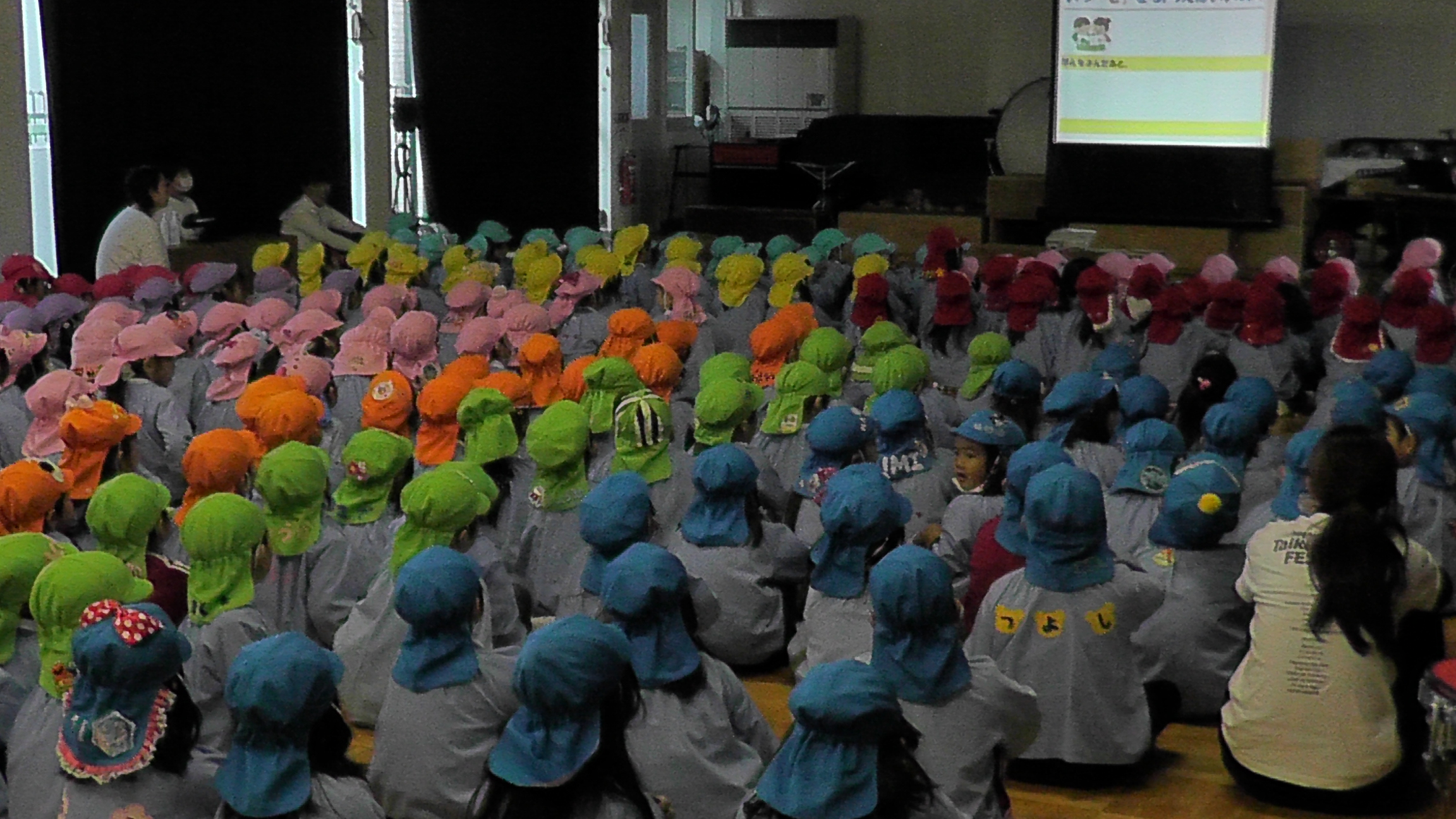 幼稚園では、毎日、トイレや棚や床、手すりなど、子どもの手の届くところの消毒、空気清浄、換気に励んでいますが、感染をふせぐためには、手洗い・うがいがとっても大切です。子どもたち自身で正しく手洗い・うがいをしてもらうよう、今日は、講師の先生をお迎えして教えていただきました。ふだんも手洗い・うがいはしていますが、これからの季節にそなえて、もう一度子どもたちに手洗いの大切さを意識してもらうよう、おはなしをきいて、そのあと実際に手洗いをしました。