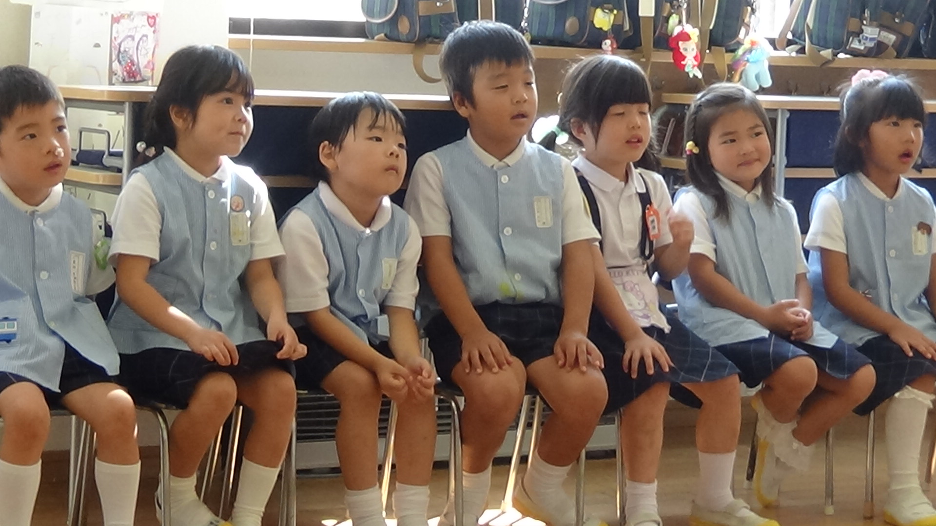 年長組さんに勝るとも劣らず、すぐ真似して元気に発音していましたよ。耳がいいのですね。